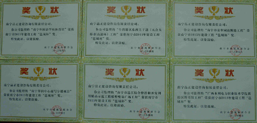 (本站訊 通訊員 羅耿)近日,由南寧市建筑業(yè)聯合會組織評選的南寧市2015年建設工程“邕城杯”獎結果揭曉,南寧品正負責監(jiān)理的南寧華潤中心南寫字樓工程、南寧外國語學校體育館工程、南寧市翡翠園南側路工程、牛灣港區(qū)東西主干道(五合大橋一新高速環(huán))工程、廣西水利電力職業(yè)技術學院新校區(qū)圖書館工程和南寧市邕江綜合整治和開發(fā)利用精品示范工程雕塑噴泉廣場等6個工程榮獲該獎項。南寧市“建設工程質量邕城杯”獎是我市建設工程質量的最高榮譽獎,獲獎的建設工程施工質量達到本市的一流水平。