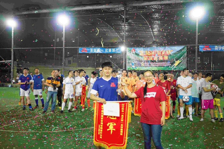 (本站訊 通訊員 羅耿)昨晚9點,新屋足球館,2016年“品正杯”足球邀請賽迎來了最后的決戰(zhàn),決賽在公認的兩支傳統(tǒng)強隊間展開,由東道主南寧品正對陣南寧市建筑管理處,經(jīng)過80分鐘的激烈角逐,最終南寧品正以8:6戰(zhàn)勝市建管處,如愿獲得本次比賽的冠軍。