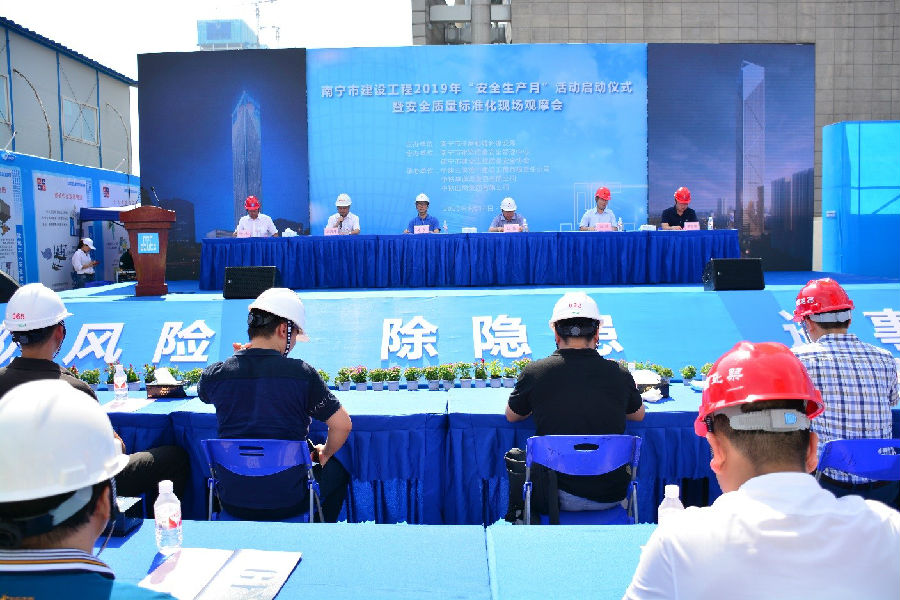 2019年6月14日,公司組織參加了由南寧市住建局、南寧市建管中心、南寧市建設(shè)質(zhì)安協(xié)會(huì)、中建三局一公司、中鐵四局、中鐵隧道局聯(lián)合承辦的南寧市建設(shè)工程2019年“安全生產(chǎn)月”活動(dòng)啟動(dòng)儀式暨安全質(zhì)量標(biāo)準(zhǔn)化現(xiàn)場(chǎng)觀摩會(huì)。今年是全國(guó)第18個(gè)“安全生產(chǎn)月”,以“防風(fēng)險(xiǎn)、除隱患、遏事故”為主題。啟動(dòng)儀式由市建設(shè)質(zhì)安協(xié)會(huì)李壽坤會(huì)長(zhǎng)主持,市住建局黃贊副局長(zhǎng)、市建管中心錢強(qiáng)主任、中建三局一公司廣西公司總經(jīng)理張少林、廣西威壯房地產(chǎn)有限公司總經(jīng)理劉超、廣西威壯房地產(chǎn)有限公司副總經(jīng)理洪志星出席會(huì)議,參加啟動(dòng)儀式的還有各縣、城區(qū)、開(kāi)發(fā)區(qū)主管部門領(lǐng)導(dǎo),駐市施工、監(jiān)理企業(yè)及項(xiàng)目業(yè)主主要負(fù)責(zé)人。