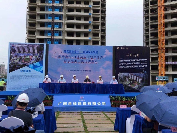 2021年6月4日,公司組織員工參加了由南寧市住建局、南寧市建管中心、南寧市建設(shè)質(zhì)安協(xié)會、廣西恒大企業(yè)集團(tuán)有限公司、廣西甬桂建設(shè)有限公司聯(lián)合承辦的南寧市建設(shè)工程2021建筑施工安全生產(chǎn)暨創(chuàng)城創(chuàng)衛(wèi)現(xiàn)場觀摩會。今年6月是全國第20個“安全生產(chǎn)月”,以“落實安全責(zé)任制,推動安全發(fā)展”為主題。啟動儀式由市建設(shè)質(zhì)安協(xié)會李壽坤會長主持,市住建局黃贊副局長、市建管中心錢強(qiáng)主任、廣西甬桂建設(shè)有限公司總經(jīng)理李朝群等出席會議,參加啟動儀式的還有各縣、城區(qū)、開發(fā)區(qū)主管部門領(lǐng)導(dǎo),駐市施工、監(jiān)理企業(yè)及項目業(yè)主主要負(fù)責(zé)人。