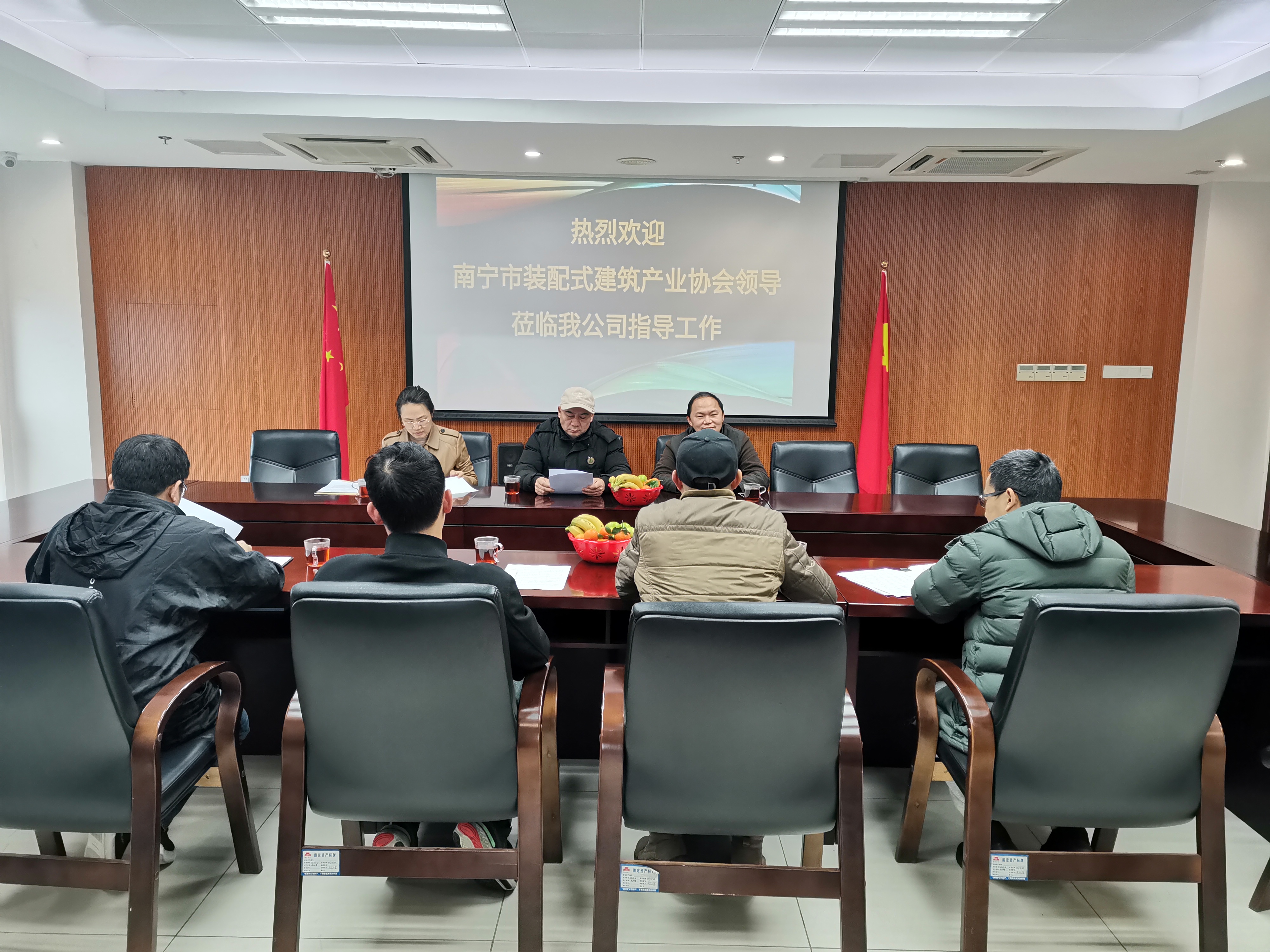 2022年2月17日,擬任南寧市裝配式建筑產(chǎn)業(yè)協(xié)會執(zhí)行會長崔偉勤、秘書長韋金果、副秘書長趙克菲一行蒞臨我公司座談,并指導(dǎo)工作。我公司副總經(jīng)理兼總工程師姚思清,副總工程師陳代遠、藍羽迅,第一分公司技術(shù)負責(zé)人張騰參加了本次座談會議。