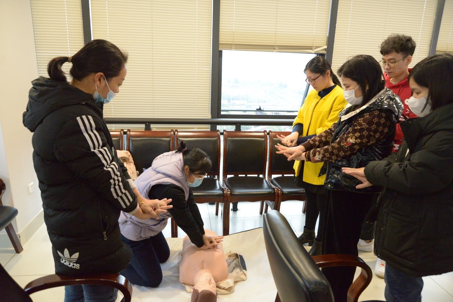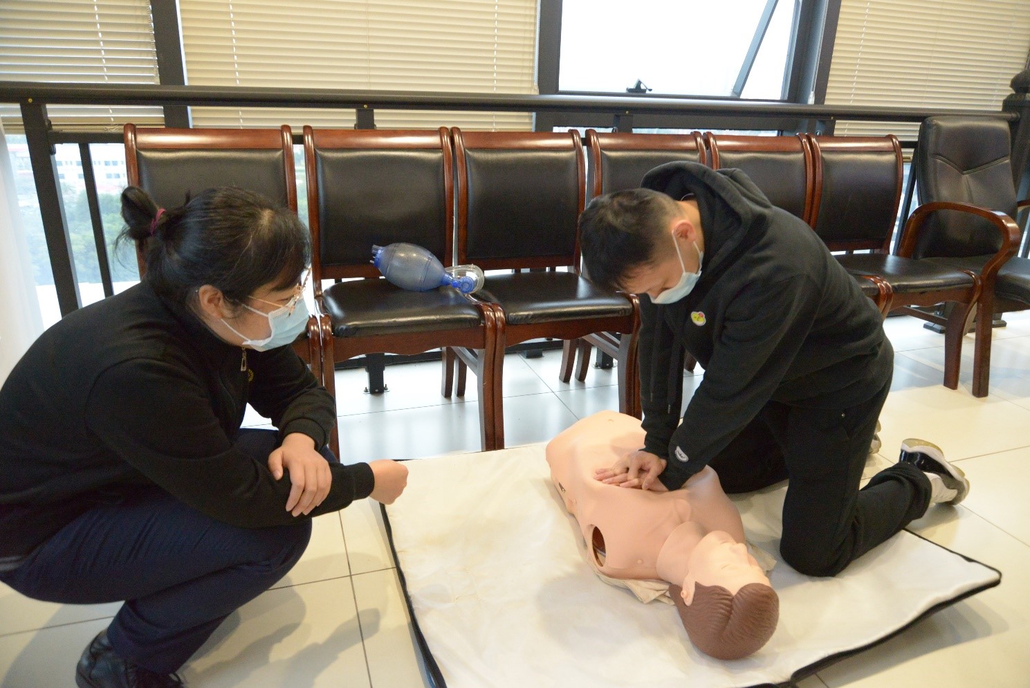 培訓(xùn)老師專業(yè)的講解和專業(yè)的救護技術(shù)深深地吸引了在場的每一位學(xué)員,大家在培訓(xùn)老師“一對一”指導(dǎo)下學(xué)習(xí)心肺復(fù)蘇的輪流實操。老師們耐心地提示要點,糾正錯誤動作,確保學(xué)員們的每個動作做到標準、到位。通過理論講解輔導(dǎo)和“沉浸式”實操演練,學(xué)員們更全面、深入地領(lǐng)會了應(yīng)急救護的知識要領(lǐng)和實操技巧。